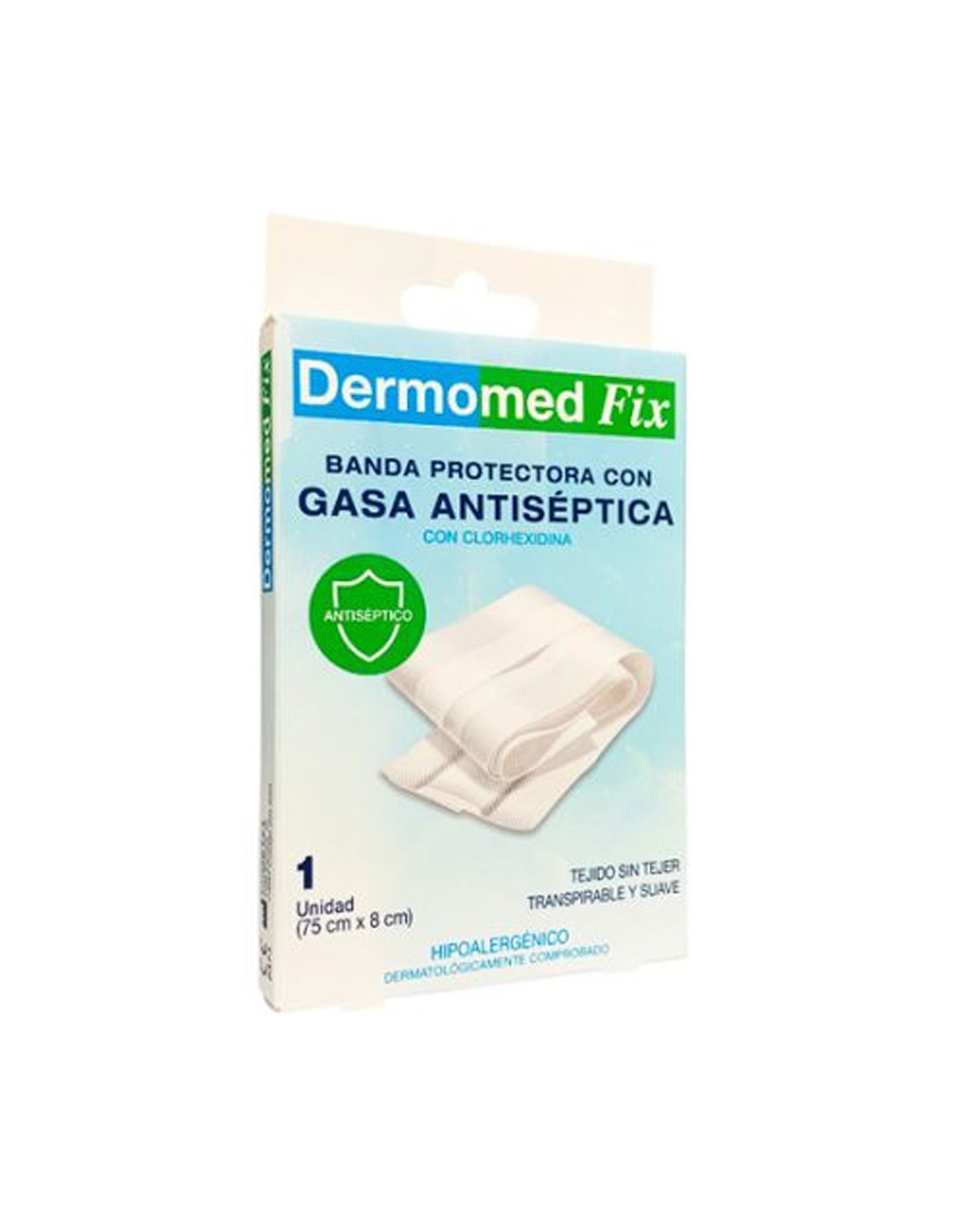 La banda con gasa antiseptica de Dermomed está compuesta por gasa estéril impregnada con sustancias antisepticas que ayudan a prevenir infecciones en la herida.