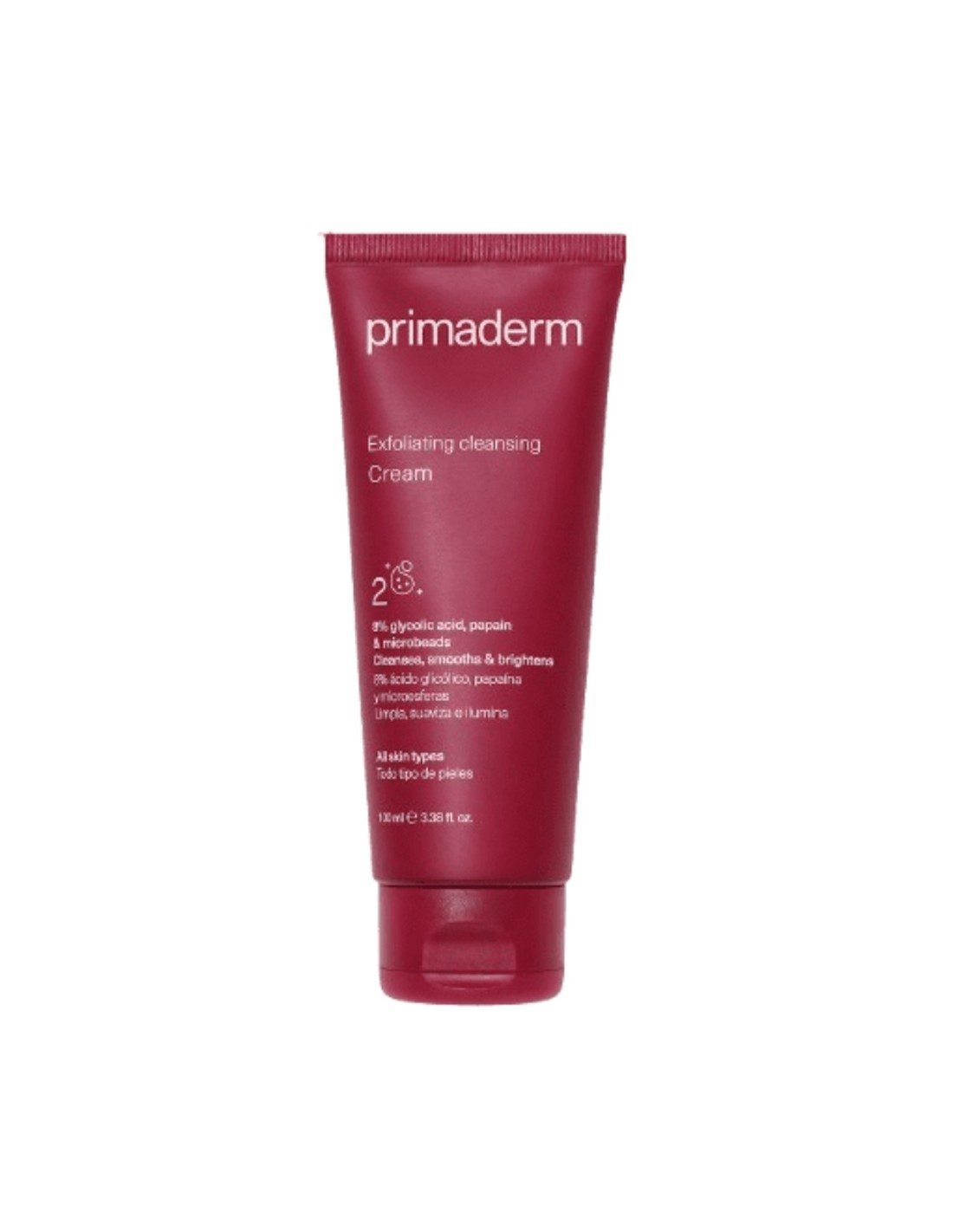 La crema exfoliante Primaderm contiene ingredientes naturales como extracto de aloe vera, aceite de almendras y microgránulos exfoliantes que ayudan a mejorar la textura de la piel y estimular la renovación celular.