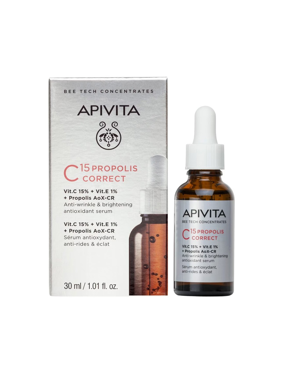 El Apivita Serum C15 Propolis Correct 30ml es un serum facial antioxidante que ayuda a corregir los signos del envejecimiento y proteger la piel del daño causado por los radicales libres. Su fórmula está enriquecida con propóleo y vitamina C, que actúan para mejorar la luminosidad y firmeza de la piel.