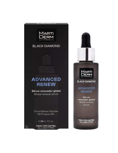 Martiderm Black Advanced Renew 30ml es un tratamiento facial innovador que combina la eficacia de la tecnología más avanzada con ingredientes de alta calidad. Este producto está diseñado para rejuvenecer y renovar la piel, aportando luminosidad y mejorando su textura. Con su fórmula exclusiva, ayuda a reducir las arrugas y líneas de expresión, proporcionando un aspecto más joven y radiante.