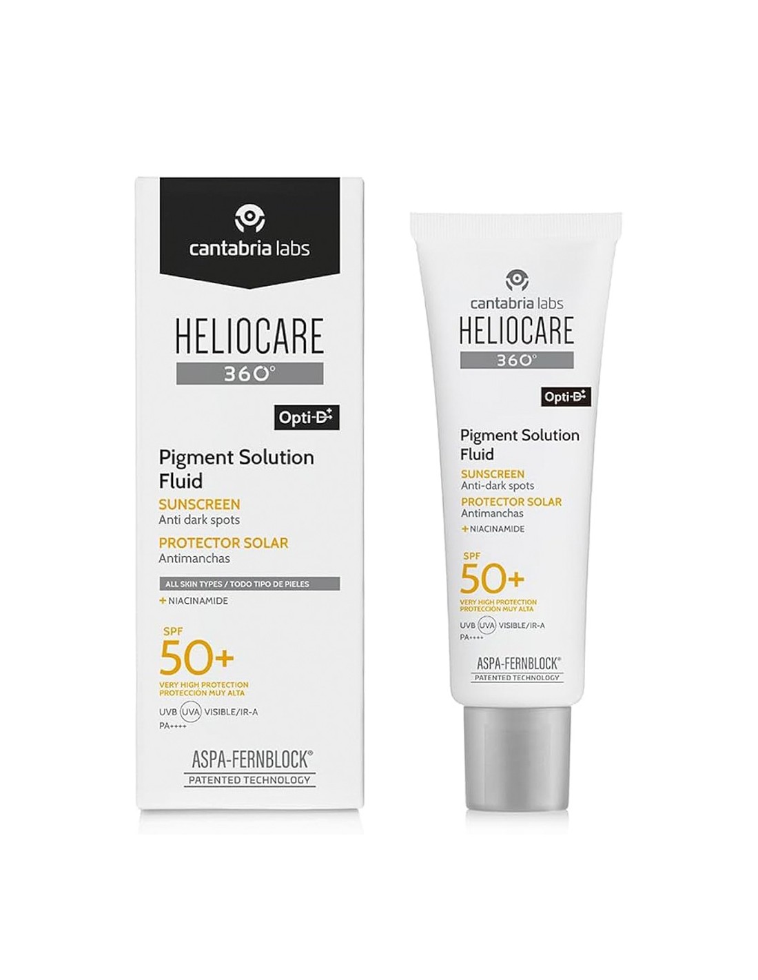 El Heliocare 360º Pigment Solution Fluid SPF50 50ml es un protector solar facial de alta protección que previene y reduce las manchas pigmentarias, gracias a su exclusiva fórmula con tecnología Fernblock FC y ingredientes despigmentantes.