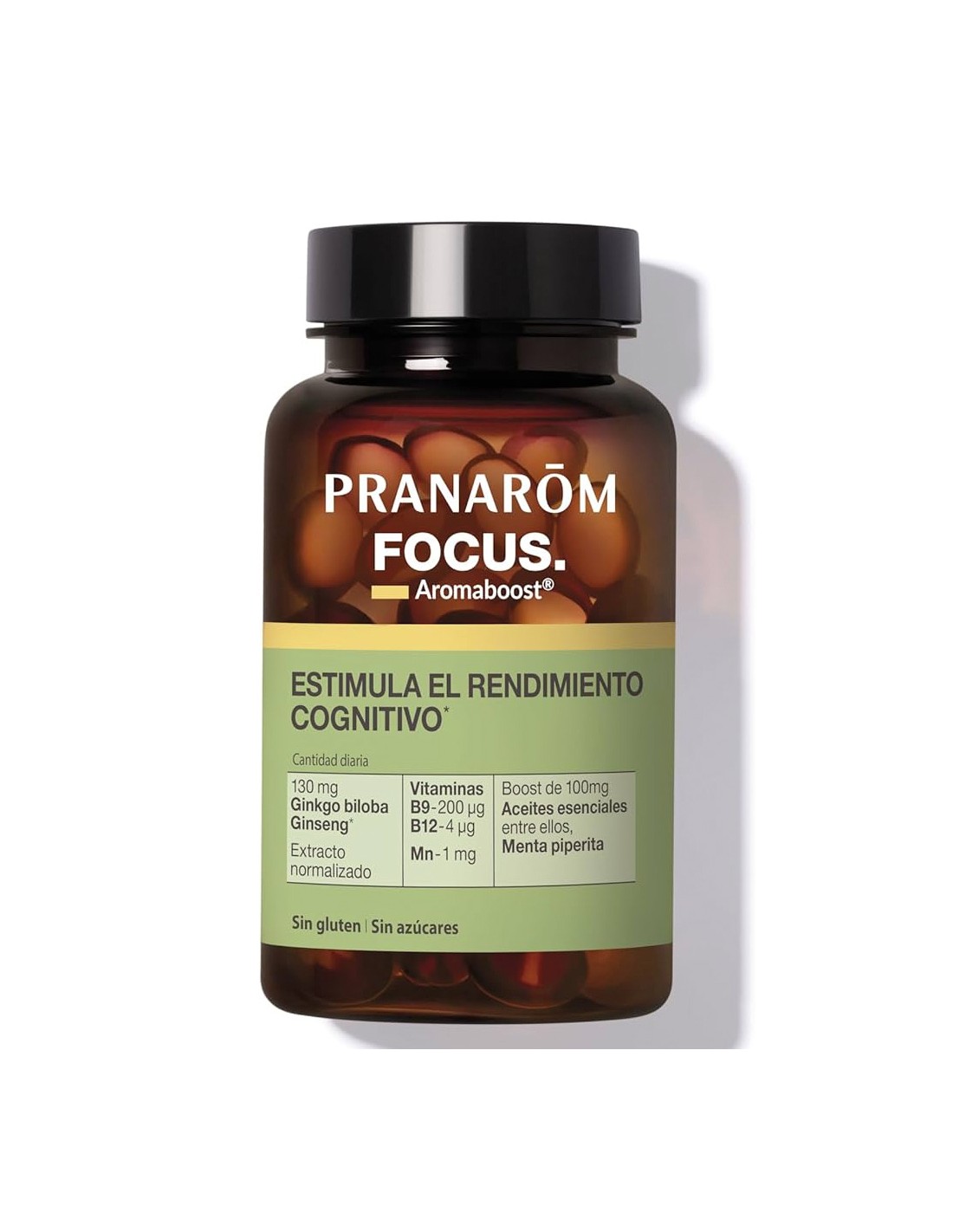 Pranarom Aromaboost Focus es un suplemento alimenticio en forma de cápsulas diseñado para mejorar la concentración y el enfoque mental.