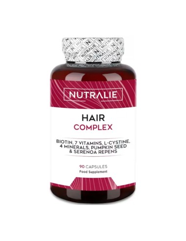 Nutralie Hair Complex es un complemento alimenticio diseñado específicamente para favorecer la salud del cabello. Esta fórmula innovadora combina una selección de ingredientes naturales que nutren el folículo piloso y promueven el crecimiento de un cabello más fuerte y saludable. La mezcla de vitaminas, minerales y extractos botánicos actúa de manera sinérgica para ayudar a prevenir la caída del cabello y mejorar su apariencia general.