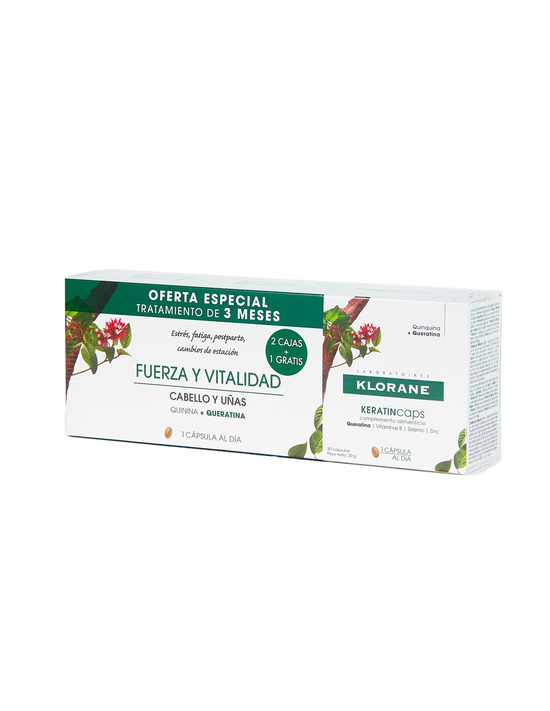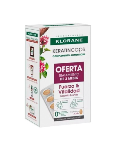 Para aportar fuerza y vitalidad al cabello, los laboratorios de Klorane han formulado el complemento alimenticio KERATINcaps, una nueva fórmula completa a base de extracto de quinina, vitaminas B, zinc, selenio y queratina para aportar los micronutrientes esenciales para el crecimiento de un cabello fuerte y sano.