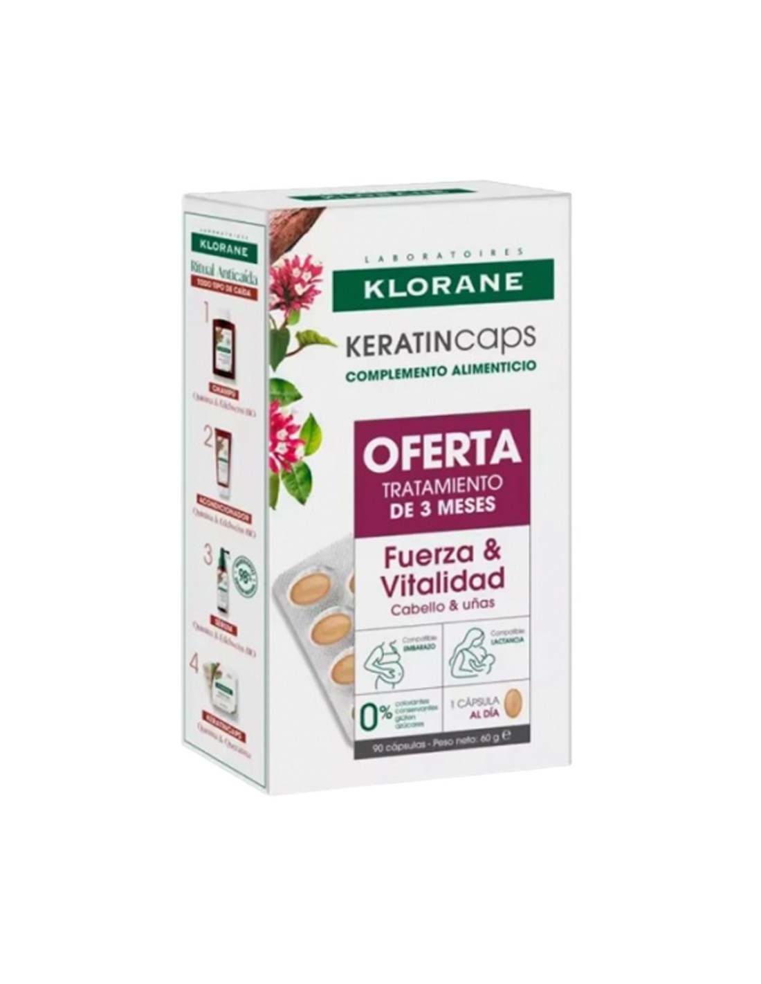 Klorane Trio Keratincaps 90 caps Ricas en micronutrientes y queratina, KeratinCaps actúa desde el interior para mantener el cabello fuerte y sano.