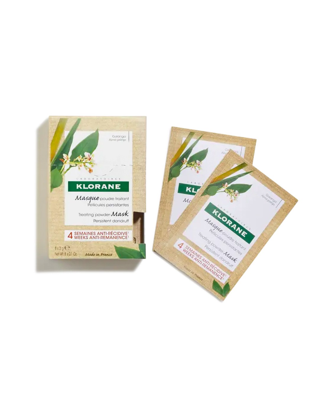 La mascarilla en polvo con galangal ha sido formulada para tratar eficazmente y ayudar a eliminar incluso la caspa más persistente y previene su reaparición durante un periodo de hasta 4 semanas*.