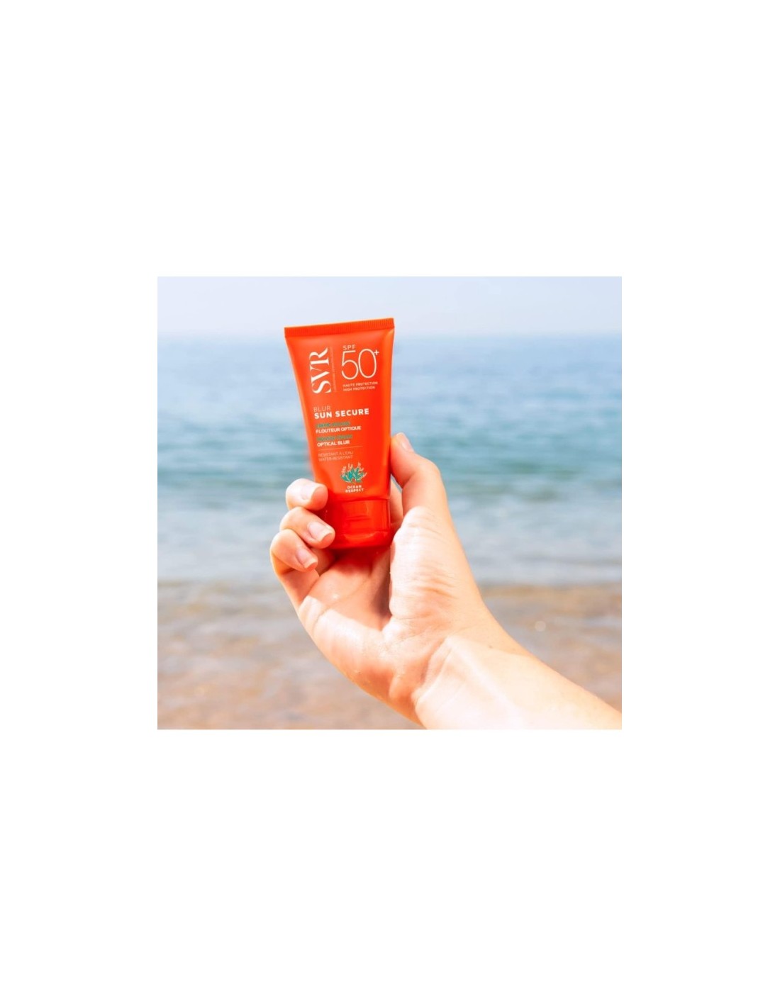 SVR Sun Secure Blur SPF50 Muy alta protección frente los rayos UVA y UVB proporcionada por una combinación patentada** de cuatro filtros solares orgánicos fotoestables que forman una barrera protectora física en la superficie de la piel: