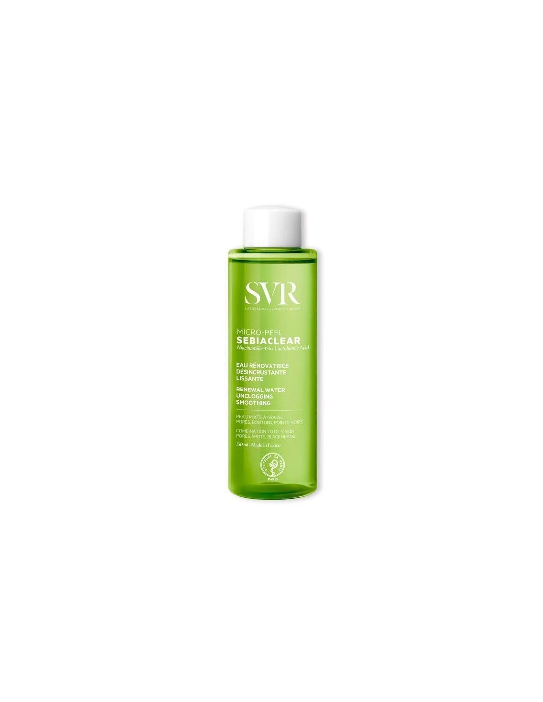 SVR Sebiaclear Micro Peel 150ml Para pieles sensibles, mixtas a grasas, con tendencia acneica. Poros, marcas, puntos negros. Rostro, adultos.
