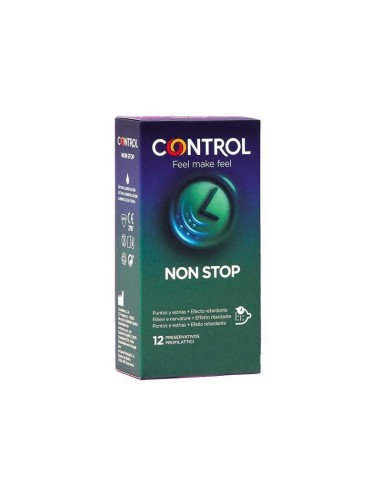 Control Preservativos Non Stop 12u Lo importante de sentirse bien .Cada relación íntima puede convertirse en increíble si además son non stop, que convierten todo en más wow. Gracias a su relieve de puntos y estrías estimulantes, en cada relación puedes descubrir nuevas vibraciones.