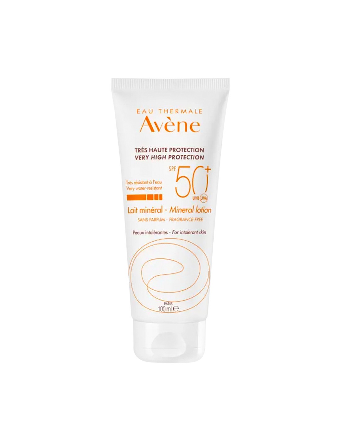 Avene Solar Mineral Leche SPF50 100ml Protección facial y corporal muy alta para pieles intolerantes a los filtros químicos y perfumes para adultos y niños.