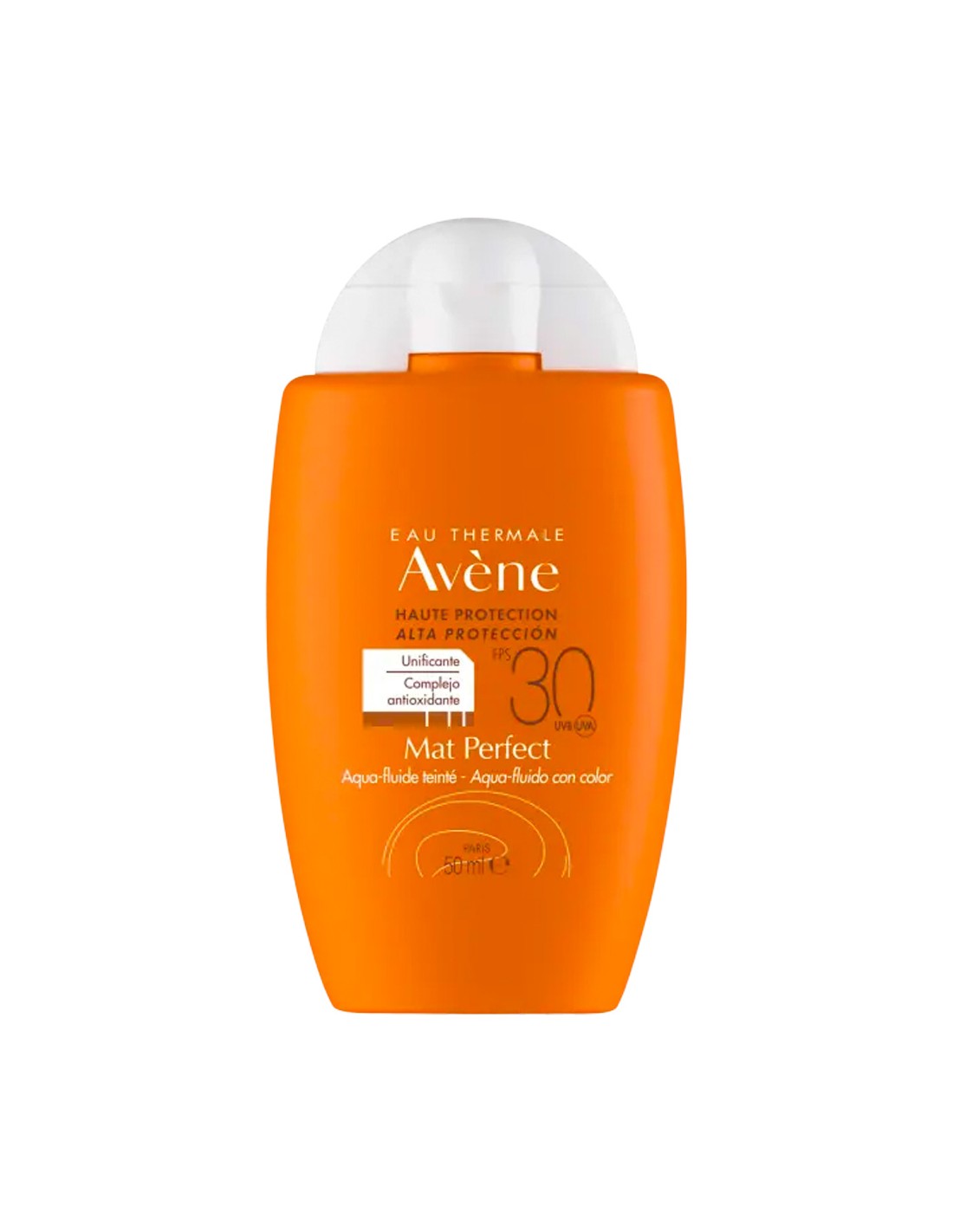 Avene Solar Mat Perfect Aqua Fluido Color SPF30 50ml Protección solar alta unificadora para pieles sensibles mixtas o grasas.