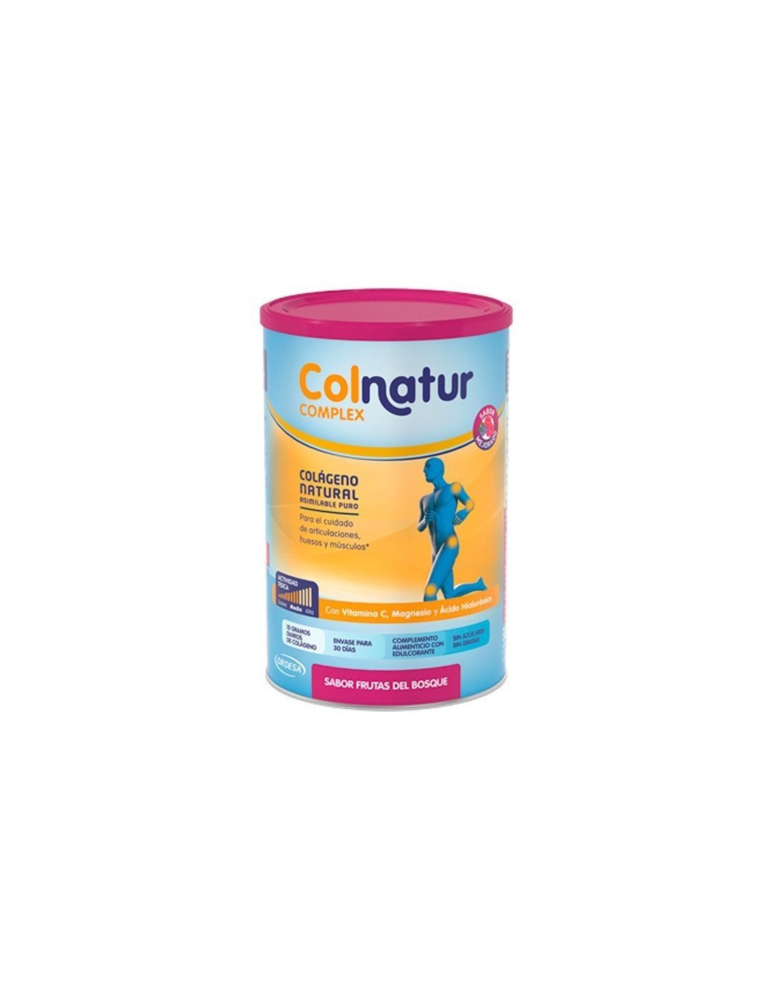 Colnatur Complex Frutas del Bosque 345g es un complemento alimenticio a base de proteína de colágeno hidrolizada (natural, muy asimilable y pura) enriquecida con magnesio, vitamina C y ácido hialurónico.