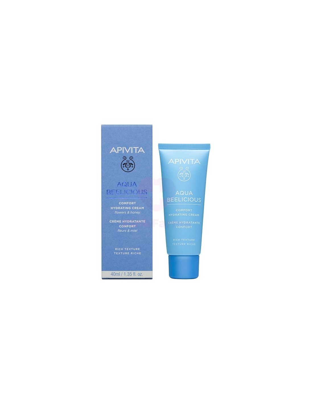 Apivita Aqua Beelicious Rica Textura formulada por expertos con extractos de flores de cistus, iris, rosa salvaje y miel, todos ellos ingredientes con alto poder hidratante, repone inmediatamente las reservas de hidratación de la piel.