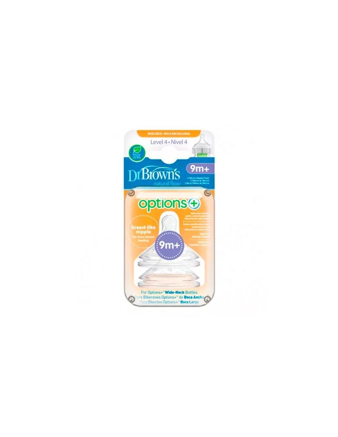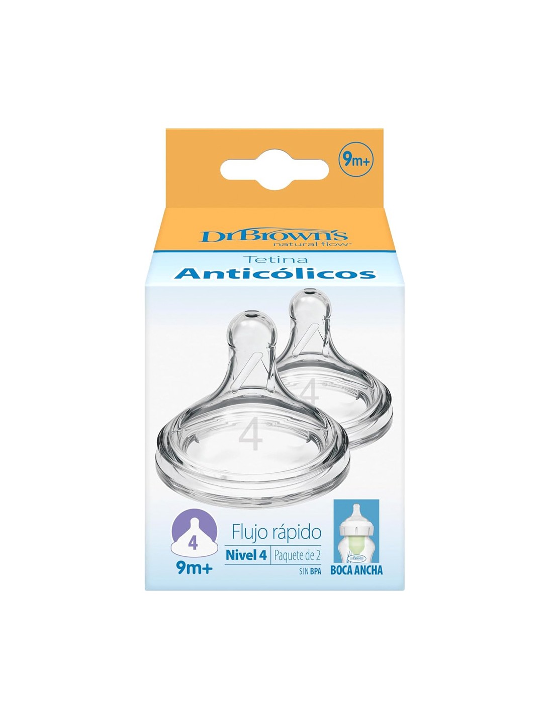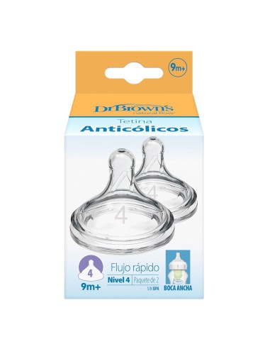 Dr Browns Tetina Nivel 4 Diseñada junto a profesionales médicos e imitando a la naturaleza, su forma curva hecha de suave silicona es más flexible en la parte superior de la tetina y gradualmente más firme en la base para ayudar a que el bebé tenga un agarre cómodo y evitar que se confunda con el pezón.