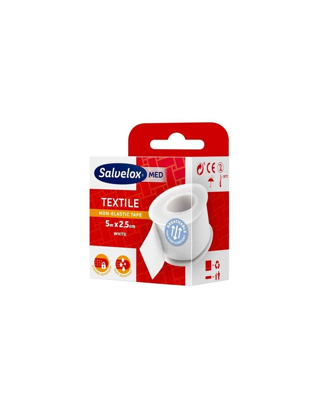 Salvelox Med Esparadrapo Blanco 5mX2,5cm Esparadrapo de color blanco con una gran adherencia sobre la piel y resistente a la suciedad.
