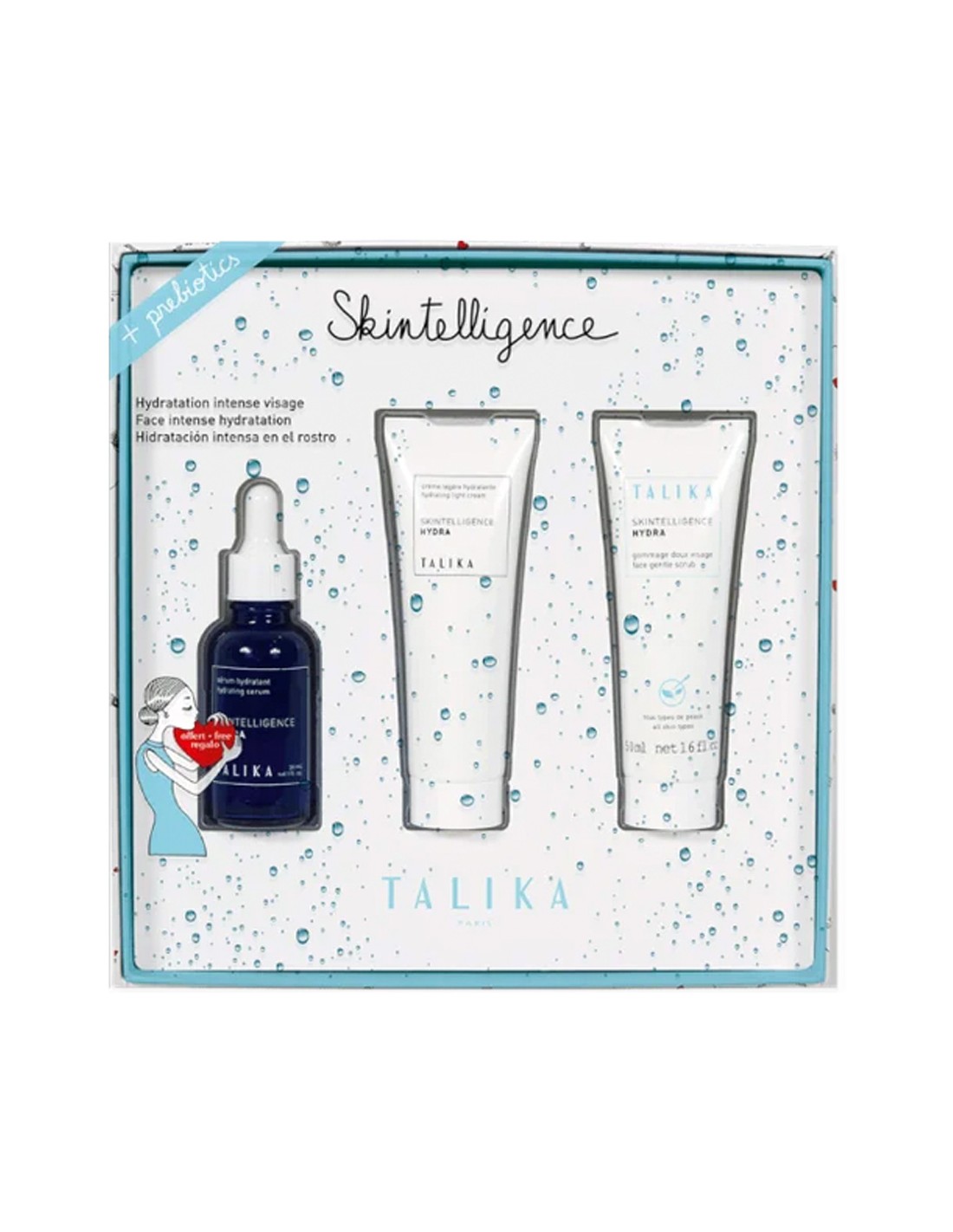 Talika Skintelligence Cofre Hidratacion contiene serum de hidratacion, crema de hidratacion y exfoliante.