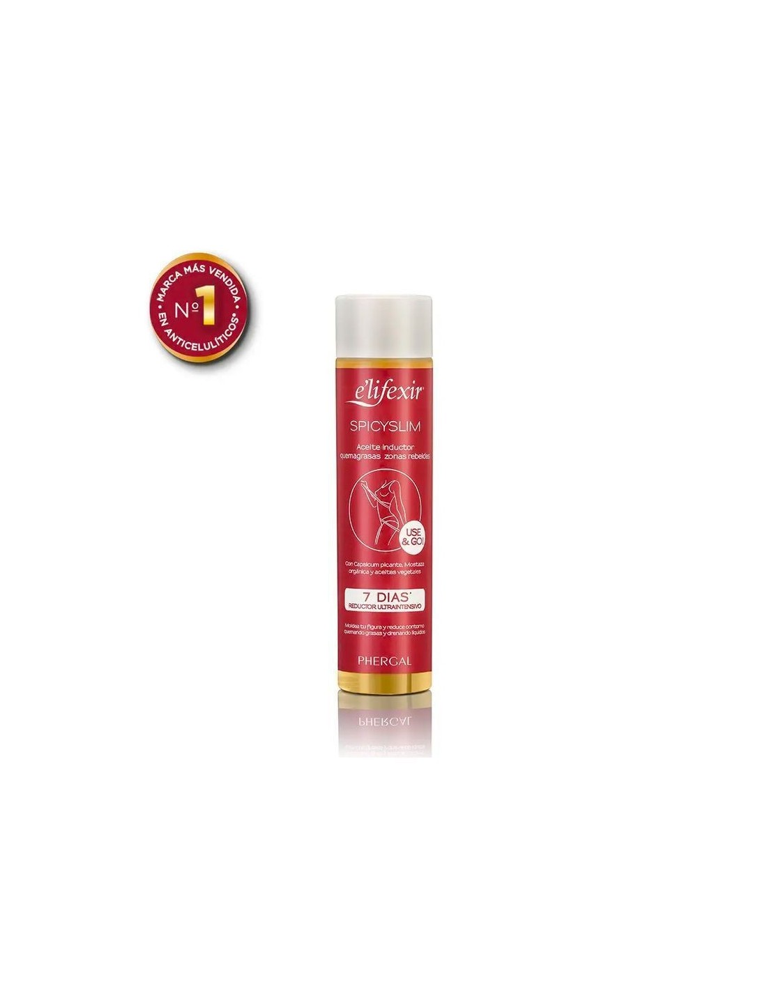 Elifexir Spicyslim Aceite 150ml es este aceite ultraintensivo de e’lifexir®, que te permitirá reducir centímetros a máxima velocidad. Está formulado con Mostaza orgánica y el Capsicum picante, que activan la circulación para una mayor eficacia y aumentan la termogénesis potenciando la eliminación de la grasa localizada, Además, contiene aceite de Café Verde que mantiene y estimula la energía celular para asegurar unos resultados visibles en 7 días. ¡El aceite para quemar grasas del que todo el mundo habla!