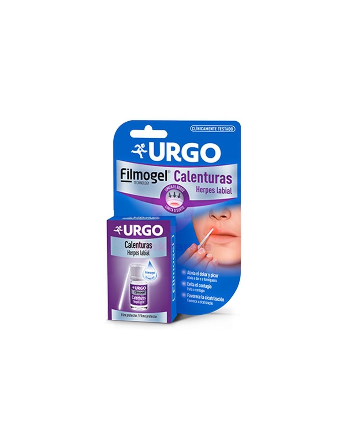 Urgo Calenturas Herpes Labial Filmogel está indicado para la protección y el tratamiento de las lesiones y síntomas de las calenturas, conocidas también como ampollas febriles o herpes labial. Su uso está indicado desde los primeros síntomas de la aparición de la calentura hasta su completa desaparición.