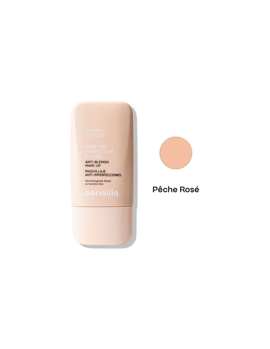 Sensilis Pure Age Perfection Fluid 05 Peche Rose Maquillaje dermatológico fluido de alta cobertura y larga duración que ayuda a controlar el sebo, cubrir y tratar las imperfecciones e hidratar y reparar la función barrera. Formulado con Zinc y Niacinamida, por su acción seborreguladora, SOD, por su acción antioxidante y Ceramidas, por su acción reestructurante de la función barrera.