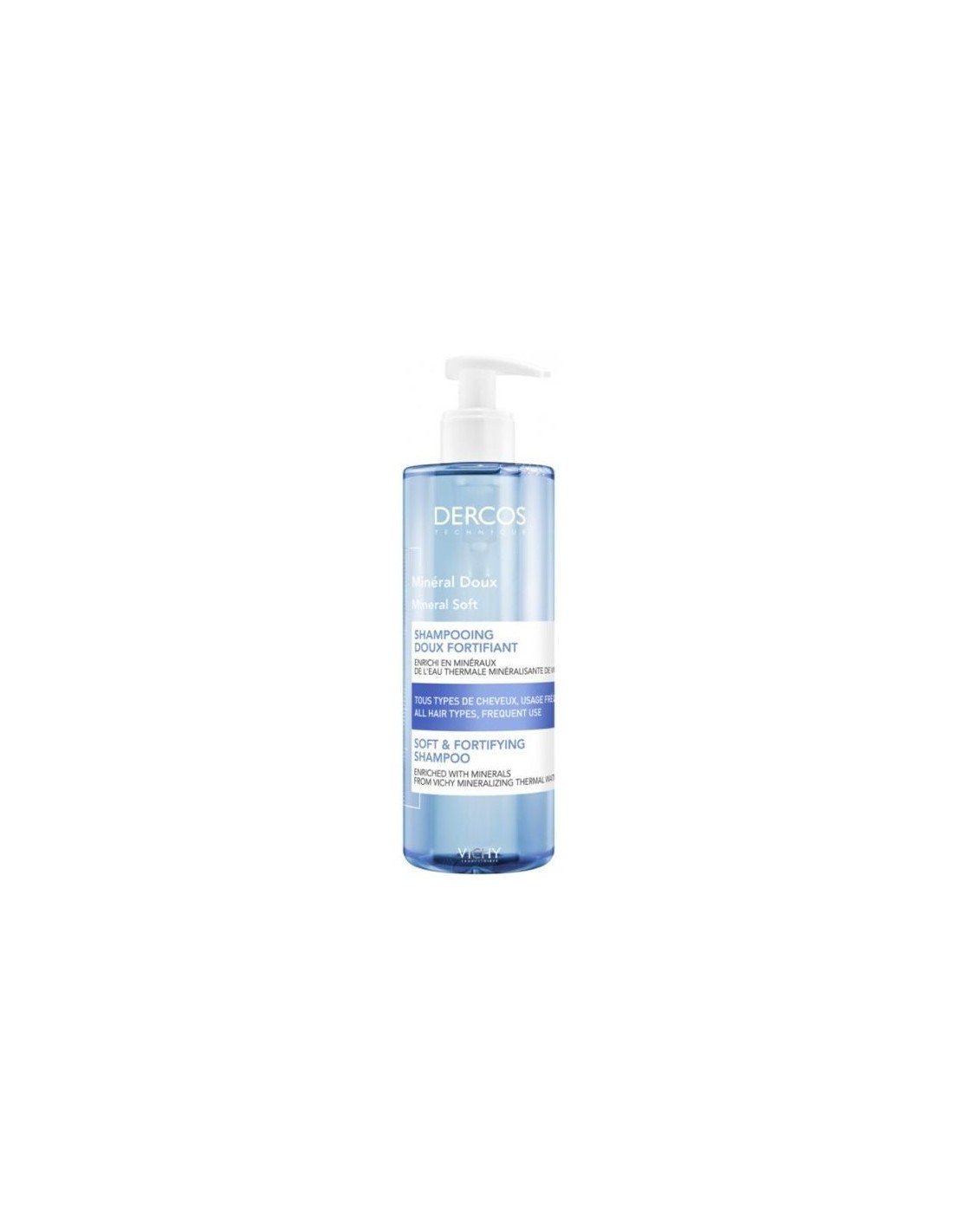 Vichy Dercos Champu Mineral Uso Frecuente 400ml Champú suave de uso diario para toda la familia, con Agua Termal Mineralizante de Vichy para un cabello visiblemente más brillante, fuerte y con aspecto saludable de la raíz a las puntas.
