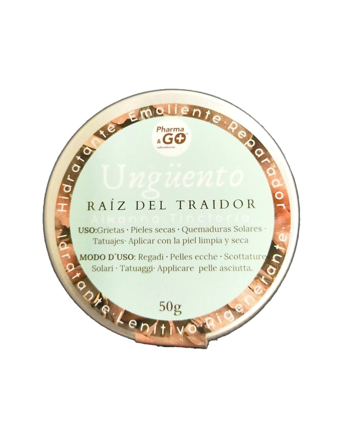 Libre de parabenos . El Ungüento Raíz del Traidor tiene su origen en la Edad Media. Junto con diversos aceites vegetales la planta Alkanna Tinctoria (Raíz del traidor) se maceraba con el fin de curar heridas abiertas, forúnculos, ulceras varicosas, herpes, pieles secas y para el tratamiento de quemaduras de todo tipo.