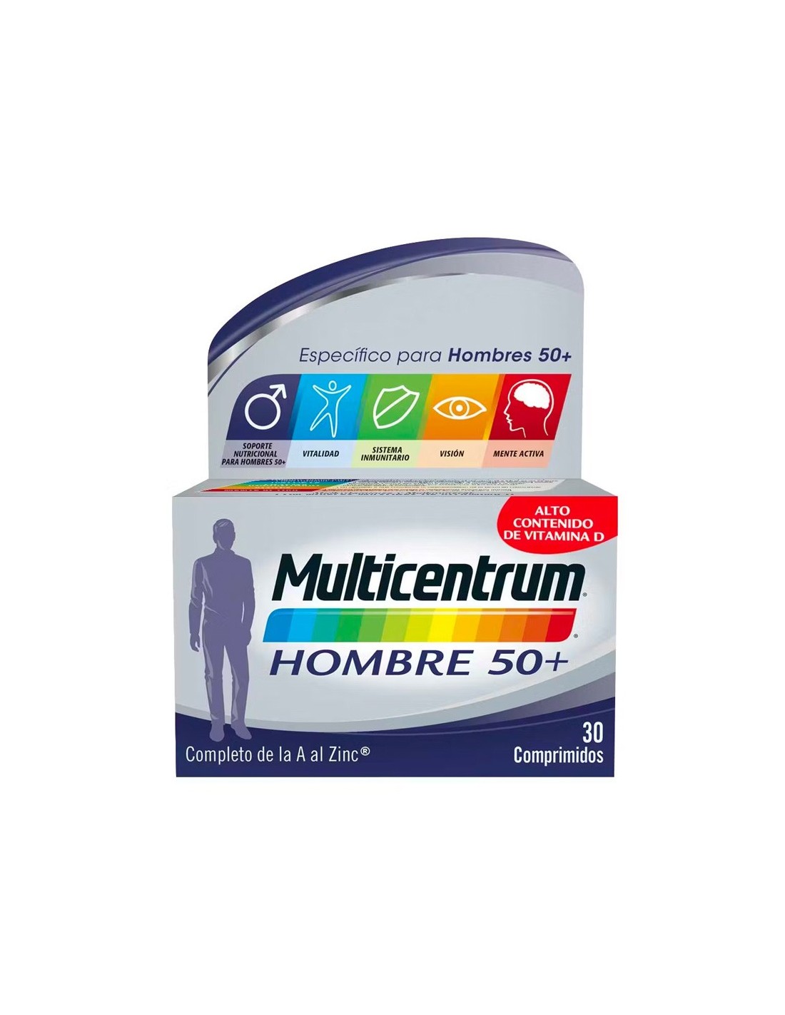Precisamente debido al mayor consumo de energía de los hombres, las vitaminas B (B1, B2, B6 y B12) resultan sumamente importantes para contribuir al metabolismo energético normal. Complementado con vitamina A que contribuye al mantenimiento de la visión en condiciones normales y con ácido pantoténico que ayuda al rendimiento intelectual normal. Con zinc y hierro que contribuyen a la función cognitiva normal.