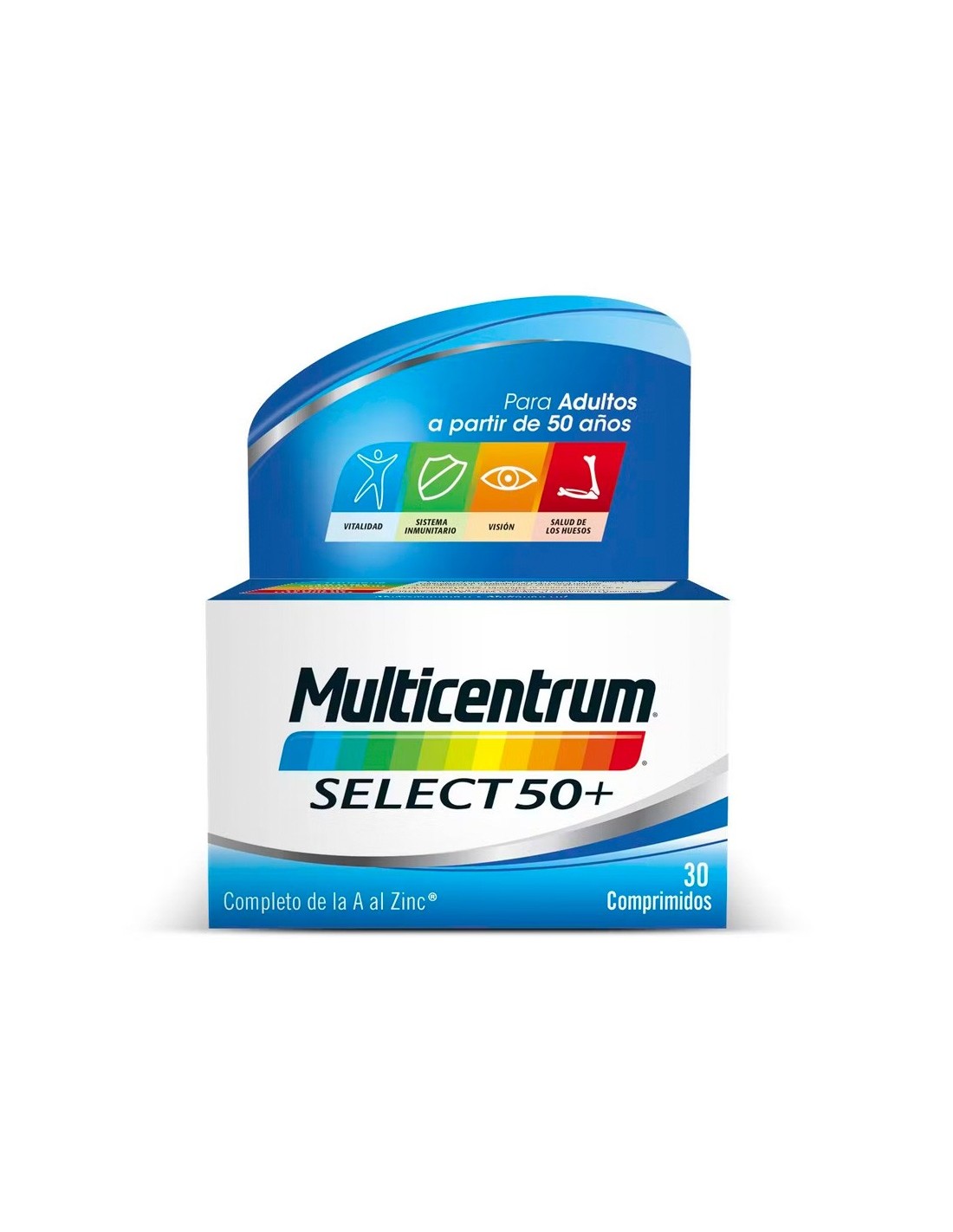 La fórmula de Multicentrum Select 50+ con 13 vitaminas y 11 minerales, está especialmente adaptada a las necesidades nutricionales de las personas mayores de 50 años.