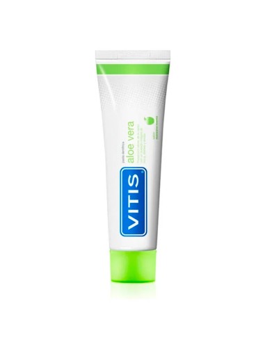 Vitis Aloe Vera Pasta Dentifrica Manzana Menta es la pasta dentífrica de uso diario especialmente formulada para prevenir eficazmente la caries y la formación de placa bacteriana (biofilm oral).