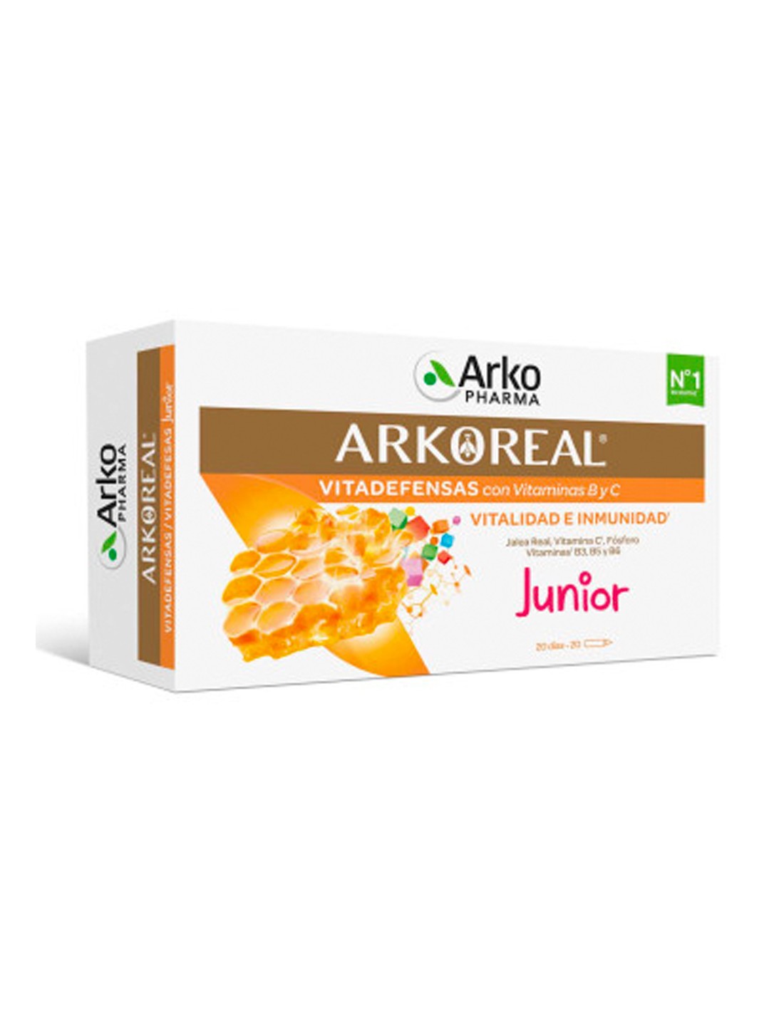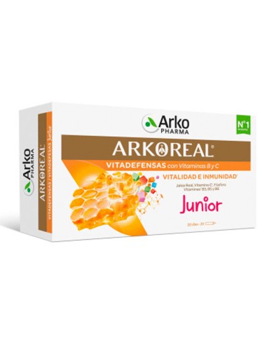 Arkopharma Arkoreal Vitadefensas Junior 20Amp es un suplemento alimenticio especialmente diseñado para fortalecer el sistema inmunológico de los niños. Está formulado con ingredientes naturales y sin colorantes ni conservantes artificiales.
