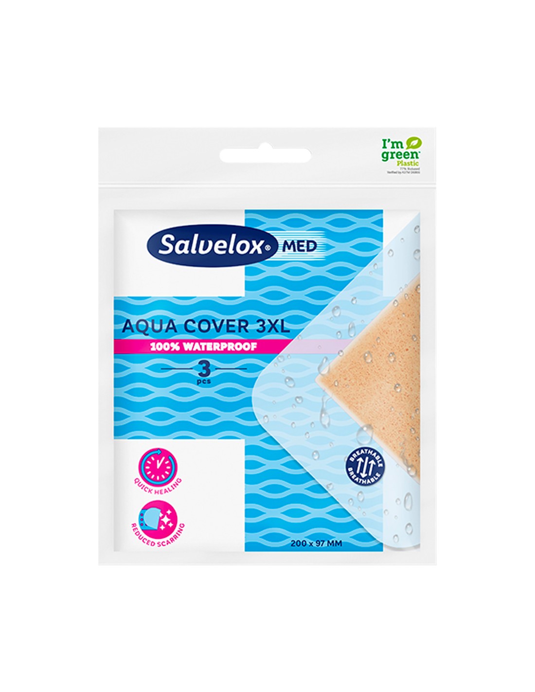 El Salvelox Med Aqua Cover 3XL Waterproof 3u es un apósito impermeable y extra grande diseñado para proteger heridas y cortes de gran tamaño. Su tamaño 3XL proporciona una cobertura adecuada para heridas extensas y permite una mayor libertad de movimiento.