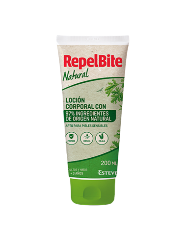 RepelBite Loción Corporal está formulada con una combinación de ingredientes de origen natural para el cuidado de la piel de toda la familia. Está enriquecida con aceite de citronela y aceite de eucaliptus que protegen la piel, su contenido en aceite de jojoba hidrata intensamente la piel. El agradable olor de aceite de lavanda ayuda a proporcionar una sensación de relajación. Protege e hidrata la piel Ingredientes de origen natural Enriquecida con aceite de citronela Ideal aplicar después de la ducha y antes de ir a dormir Crema corporal de 200 ml.