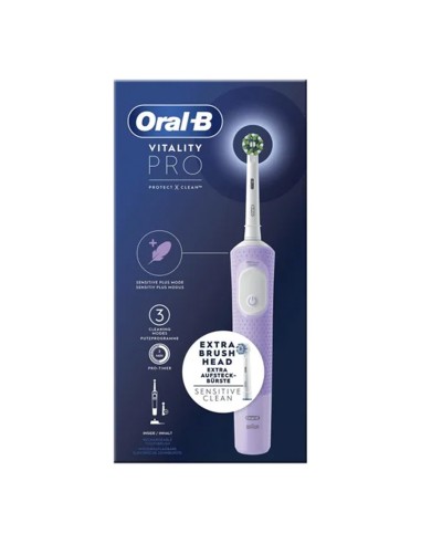 El Cepillo Oral B Vitality Pro Lila es un cepillo eléctrico diseñado para proporcionar una limpieza profunda y eficaz de los dientes, eliminando la placa y mejorando la salud bucal en general.