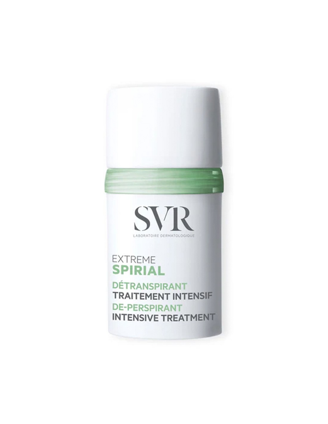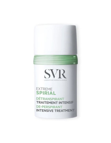 SVR Spirial Extreme es un desodorante antitranspirante en formato roll-on que proporciona una protección extrema contra la sudoración durante 48 horas, ideal para personas con sudoración excesiva o hiperhidrosis.