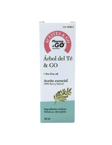 El Aceite de Árbol del Té de Pharma & Go es un producto natural con propiedades antibacterianas, antifúngicas y antiinflamatorias, ideal para el cuidado de la piel.
