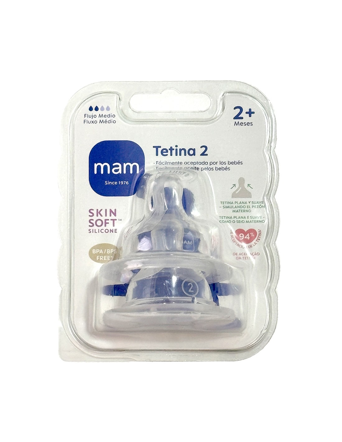 La Mam Tetina Biberon Talla 2 está diseñada para bebés de 2 meses en adelante. Son dos unidades de tetinas para biberón que garantizan una alimentación segura y cómoda para tu bebé.